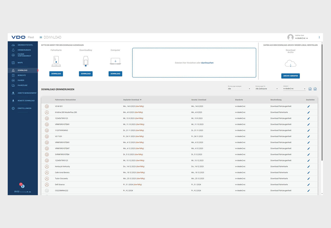 VDO Fleet® ermöglicht es Ihnen, auf einfache Art und Weise komplexe Auswertungen Ihrer digitalen Tachographendaten durchzuführen, um Ihr Flottenmanagement zu optimieren. Als dezentraler Internet-Dienst konzipiert, bietet VDO Fleet® einen gesicherten Zugang zu Ihren Fahrer- und Fahrzeugdaten von jedem Ort und zu jeder Zeit.