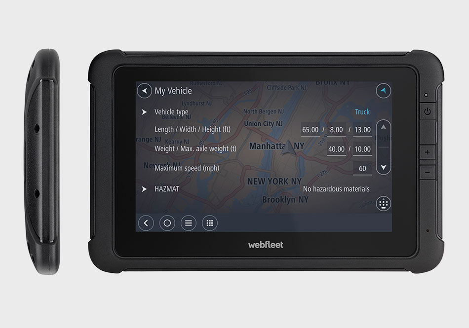 Das WEBFLEET® Flottenmanagement mit einer Navi-Lösung kombinieren: Das ist die Allroundlösung für Ihre Bedürfnisse. Mit einem Navigationssystem von Webfleet Solutions PRO zur Truck-Navigation erhalten Sie eine für Lastwagen, Bus oder Wohnmobil optimierte Route – passend zu den Maßen und der Gewichtsklasse Ihres Fahrzeugs. Eventuelle Störungen durch zu niedrige Brücken, zu schmaler Durchfahrtsbreite, Gewichtsbeschränkung oder Beschränkung für Gefahrguttransporte können damit erkannt und vermieden werden.